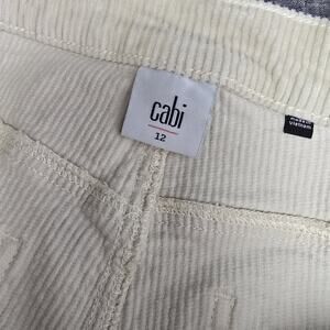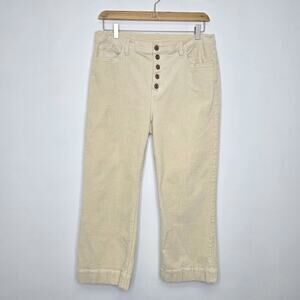 CAbi Corduroy Palm Beach Pant Size 12 Cream Crop Exposed Button Fly Pockets 4513