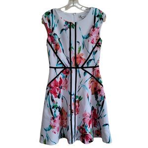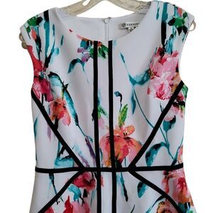 Preowned Versona Women's White Floral Sleeveless Dress Sz 4 in excellent condition.