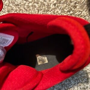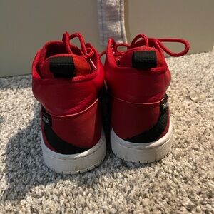 Vibrant red sneakers with a high-top design. Perfect for active play.