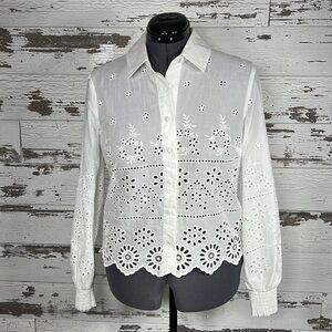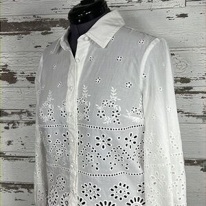 CABI Coast Eyelet Button Up Blouse White M #6084 NWT
