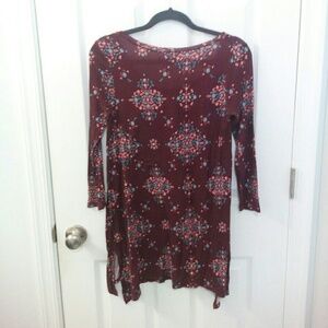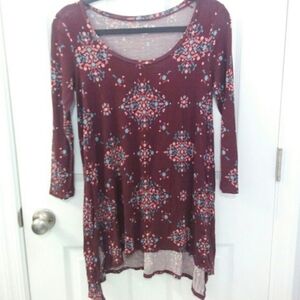 Mudd Long Burgundy Floral Tunic Blouse Size S