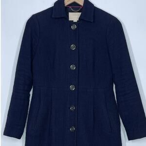 Banana Republic Navy Coarse Cotton Weave Button Front Overcoat Women's XS