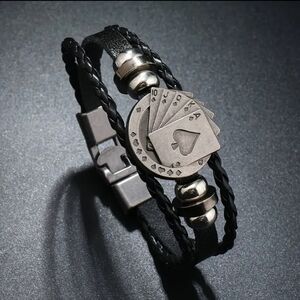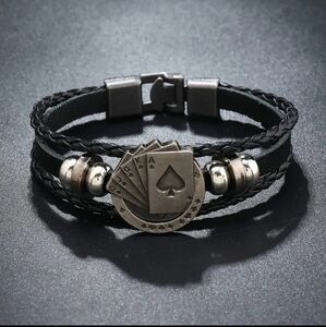Versatile Punk Inspired PU Leather Men's Bracelet With Unique Poker Charm