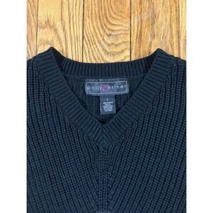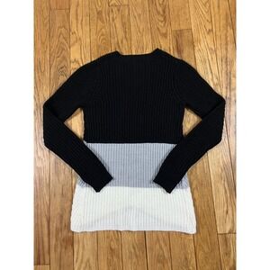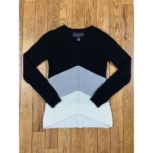 Polly & Esther Women's V-Neck Color Block Knit Sweater Size S Black Gray White