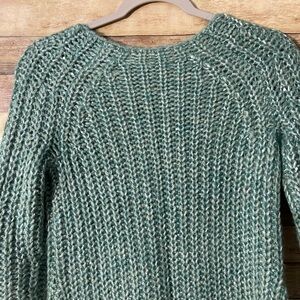 Knitted & Knotted Anthropologie Womens Sweater Green Ribbed Knit 3/4 Sleeve