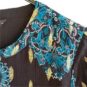 EUC White House Black Market Black Floral Metallic Dot Smocked Waist Dress Small
