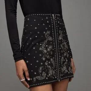 Allsaints Cassidy Zip Up Embellished Mini Skirt - Black studded