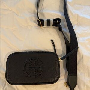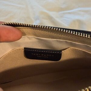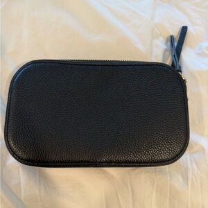 Sleek black leather pouch with gold zipper. Ideal for essentials. Perfect condition, never used.