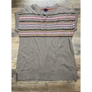 Elevate your wardrobe with this classic Tommy Hilfiger sweater vest in size XL. The brown cotton blend fabric is expertly knit in a tight-knit pattern with argyle/diamond accents and the iconic Tommy Hilfiger logo. The collarless vest features a round neckline and is perfect for walking in colder weather while still maintaining a stylish look.