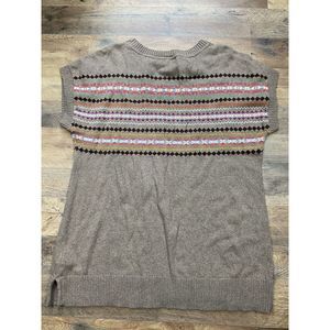 This 90s-inspired sweater vest is perfect for any occasion and can easily be dressed up or down. It is a regular fit and would make a great addition to any men's clothing collection. Made in China, this vintage-inspired piece is sure to be a staple for years to come. There are some stains on the vest
