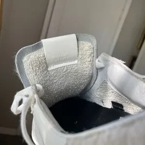 Obsessed with the faux-fur tongue and ankle details with silver-crinkle accents. Cute message on the underside of the tongue and pink rubber soles. They legit smell like perfume it’s so funny. Only worn once or twice. Size 40
