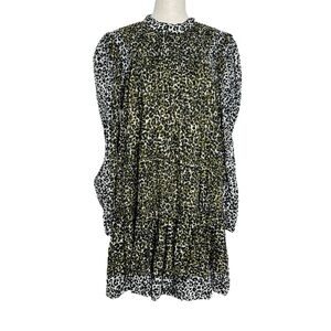 Ulla Johnson Amira Army Leopard Print Puff Sleeve Dress