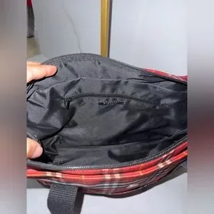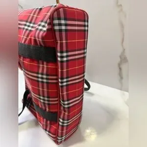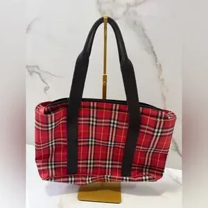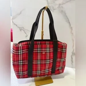 Chic authentic Burberry tote with classic red and black plaid design. Features sturdy black handles. Ideal for daily use.