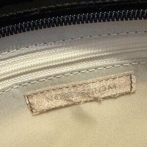 There is some dye bleeding on the larger bag above the zipper. The zipper pull ends edges have some peeling. There is some dye bleeding on the larger bag above the zipper. Please see last photos for details