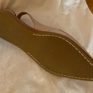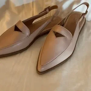 Chic blush loafers with slingback design. Ideal for versatile wear. Comfortable and stylish. Never worn - dress shoe.