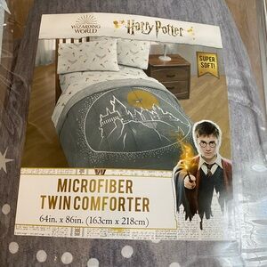 ✨Dive into the Wizarding World with this Harry Potter comforter, sheet set, with pillowcase. Soft microfiber in gray and white. Perfect for fans.💫🪄