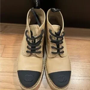 CHANEL Beige and Black Ankle Boots
