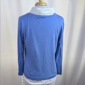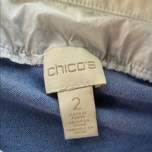 Soft and stylish blue sweater by Chico's. Collar and shirt tail.