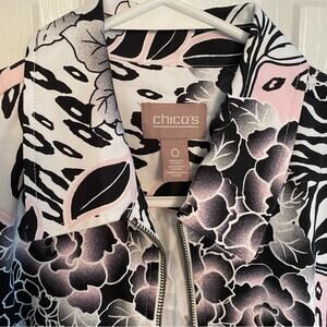 Chicos full zip lightweight jacket black white & pink floral print size 0 Small