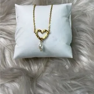 Elegant gold heart pendant necklace featuring a delicate pearl. Perfect for adding a touch of sophistication to any outfit.