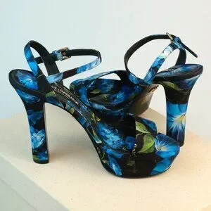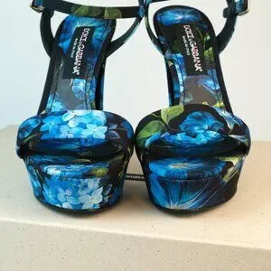 Dolce & Gabbana Keira Floral Ankle Strap Platform Sandals, Blue, Size 40