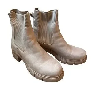 Step out in style with these chic faux suede cream ankle boots. Perfect for any occasion, these boots are comfortable and easy to pair with any outfit! Great used condition.