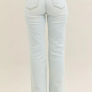 These stunning light blue high-waisted straight leg jeans feature fashion distressed detailing at the knees for an effortlessly cool look. Crafted from premium cotton denim blend, they offer comfortable stretch and durability. The high-rise waistline creates a flattering silhouette while the straight leg cut provides a timeless appeal. Perfect for casual outings or dressed up occasions, these jeans showcase carefully placed rips and fading for an authentic vintage-inspired aesthetic. The light wash denim pairs beautifully with any top, making them a versatile wardrobe essential.