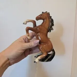Elegant brown ceramic horse figurine with black mane and tail. Perfect for decor.