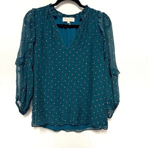 A versatile blouse that works from desk to dinner! Wear tucked into high-rise denim or trousers for a more polished look, or keep it casual worn untucked and flowy. This is a v-neck blouse with 3/4 length sleeves.