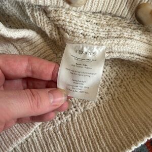 Elegant cable knit design. Button-up front. Soft and cozy material.