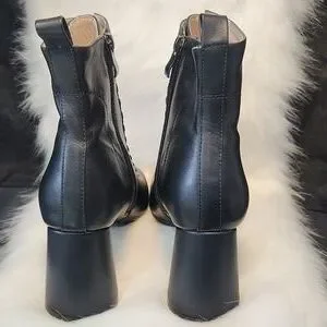 Vero Cuoio Vintage Black Leather Lace Up Boots Size 7.5