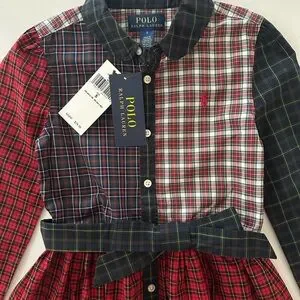 Polo Ralph Lauren Girls 5 Plaid Poplin Shirt Dress Holiday Christmas Red Blue