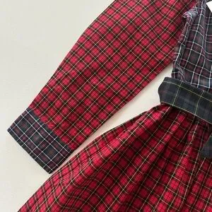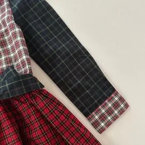 Stylish patchwork plaid dress by Polo Ralph Lauren. Features red and blue patterns. Ideal for casual outings.