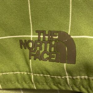 Swimwear, board-shorts, trunks, beachwear, beach, pool, lake, outdoor, The North Face, men’s board shorts, green checkered, swim trunks, size medium, quick-dry, surfwear, activewear, beach shorts, outdoor gear, casual summer, durable fabric, water sports, lightweight, adventure-ready
