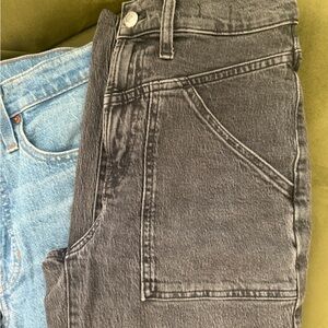 all are in excellent preowned condition, no rips or stains. From a clean and smoke free home. In styles: balloon, perfect vintage straight, and perfect vintage wide. Note that the perfect vintage wide jeans with the utility pocket have been professionally hemmed to make them more of a crop/ankle fit, to a 27” inseam.
