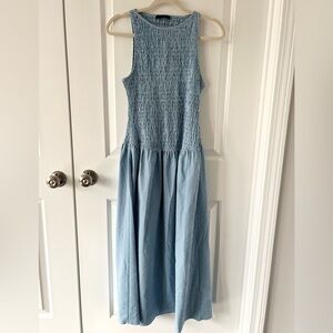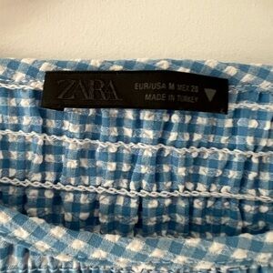 Zara Gingham Sleeveless Drop Waist Midi Dress| Blue & White | Size Medium