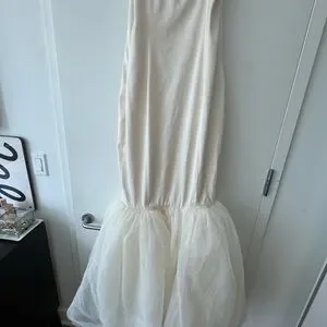 Stunning cream gown with a flowing silhouette. Perfect for special occasions. Designed to capture attention at any event, the Adelpha gown is crafted to a statement fishtail silhouette with a contrasting voluminous hem overlaid with layers of frothy tulle. It’s made from premium, lightweight slinky satin for a figure-hugging fit and is framed with a clean square neckline, complete with slender adjustable camisole straps for your perfect fit.