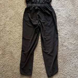 Stylish black jumpsuit with sleeveless design. Perfect for versatile wear.