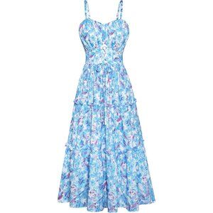 Features: This breezy maxi dress features a beautiful blue floral print, a relaxed A-line silhouette, and handy side pockets for your essentials. Adjustable straps and a smocked back provide a comfy, customizable fit. Lightweight, wrinkle-resistant fabric makes it perfect for beach trips, summer outings, or breezy city days. The lined front bodice adds durability for active wear, while the hollowed-out waist detail adds a modern boho touch.