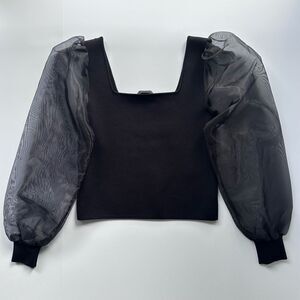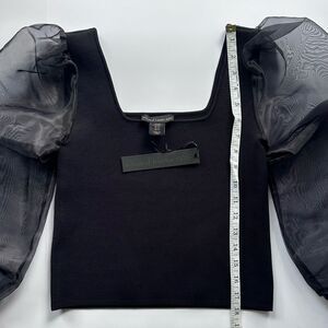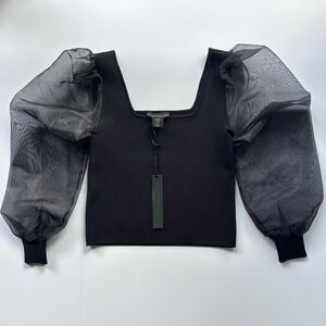 NWT House of Harlow 1960 Black Knit Stretch Sheer Puff Sleeve Top XS