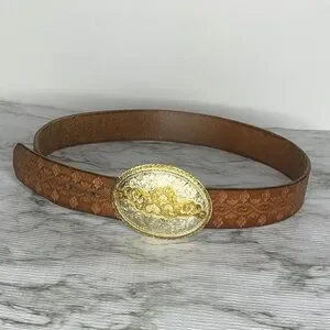 Beautiful Brown Floral Embossed Genuine Leather Belt