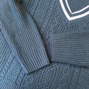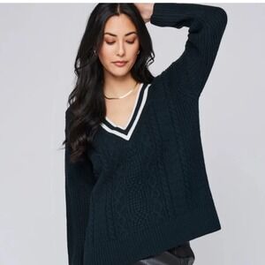 Gentle Fawn Preppy Kyla Cable Knit V Neck Sweater Pullover L Academic 90s