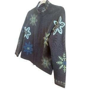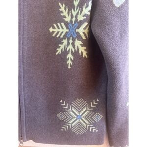 Eddie Bauer Retro Holiday Woman's Size Small Petite Grey Green Snowflake Sweater