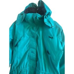 Eddie Bauer Turquoise GoreTex Woman's Medium Hooded Jacket Pockets Padded Lining