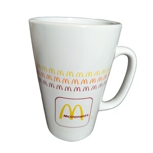 McDonald's Vintage Ceramic Coffee Mug is a collectible piece featuring the iconic McDonald's brand and restaurant theme. Made in Thailand, this original white mug is perfect for coffee lovers or collectors of vintage restaurant memorabilia. With its retro design and unique features, this mug is a great addition to any collection or as a nostalgic piece to enjoy a cup of coffee or hot tea. Very good vintage condition, no flaws