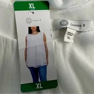 Cristina B Women's Sleeveless Blouse, White, XL Christina Elegant White Top