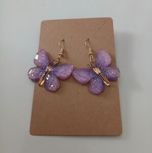 Charming lavender butterfly earrings with gold accents. Adds a playful touch to any look.