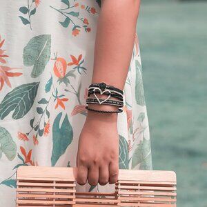 Features: Multi-strand faux leather cuff with shiny cubic zirconia accents, a cute gold heart, and black resin druzy quartz. Easy to wear with a high-quality magnetic clasp — perfect for adding some boho flair to your daily look. Looks great layered or solo.
