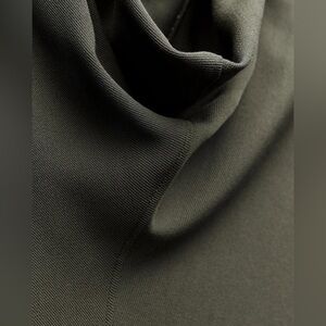 Elegant olive green midi dress. Long sleeves with a sleek silhouette. Perfect for any occasion.