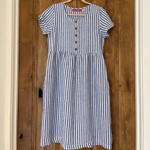 Beautiful Pyne and Smith classic dress. Tie is in the back. Purchased in July 2021. Like new condition. The dress has been ironed. For a classic linen look, wash and do not iron.